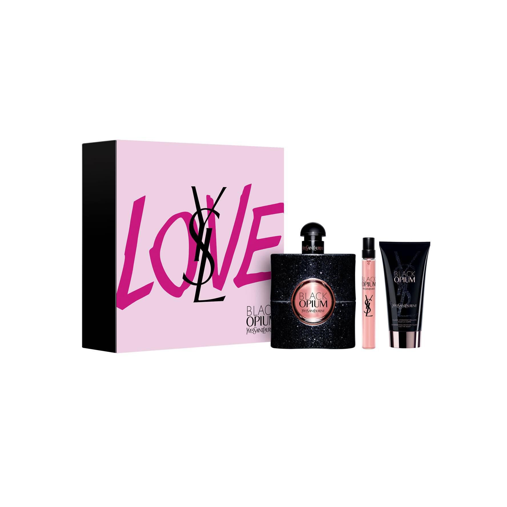 This gift set has a 1.6 oz scented body lotion, 3.0 oz Black Opium Eau de Parfum spray, and a 0.33 oz Black Opium Eau de Parfum travel spray. The scent features adrenaline-rich coffee, white flowers effect for a young and modern lady.